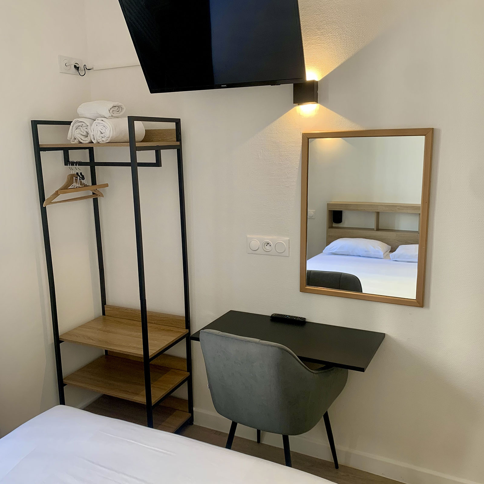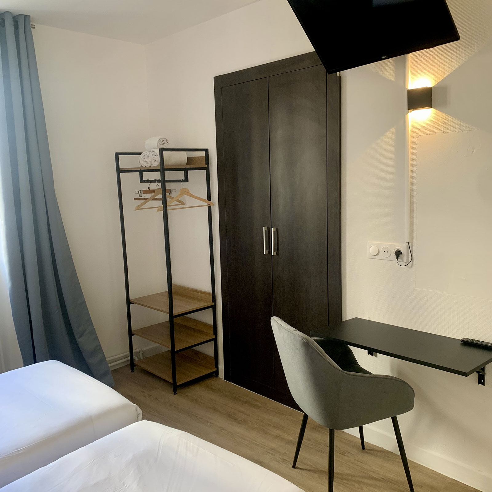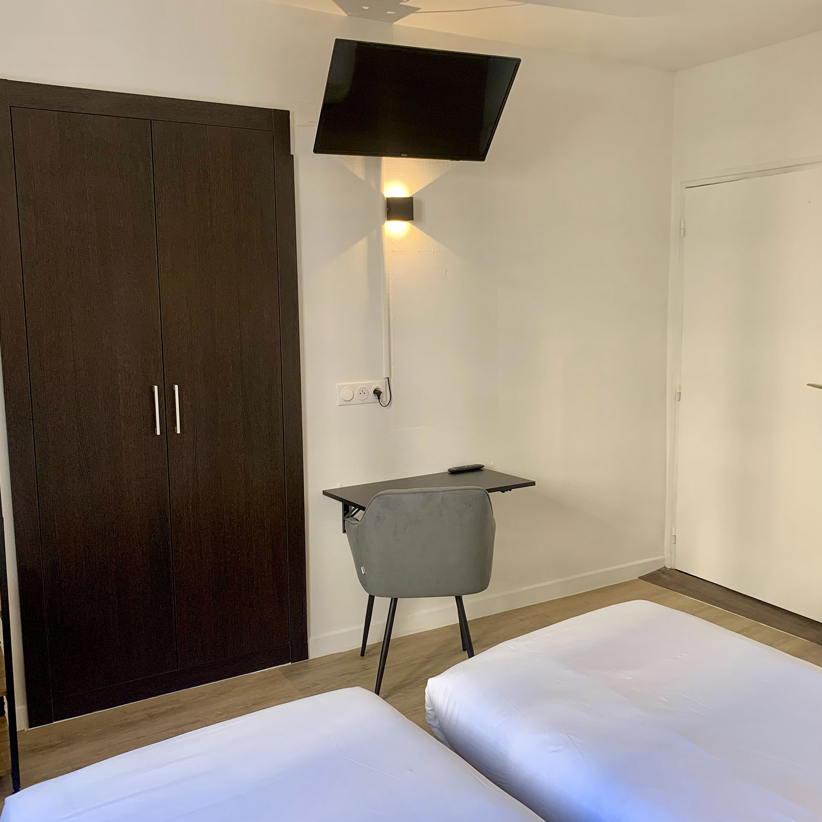 Cette chambre familiale de 20 m2 peut accueillir 4 adultes (2 lits doubles). Elle dispose d'une salle de bains privative avec sèche-cheveux et d'une télévision à écran LCD. Équipements: Bureau, Chauffage, Douche, Sèche-cheveux, Toilettes, Salle de bains, Téléphone, Télévision à écran plat, Service de réveil.